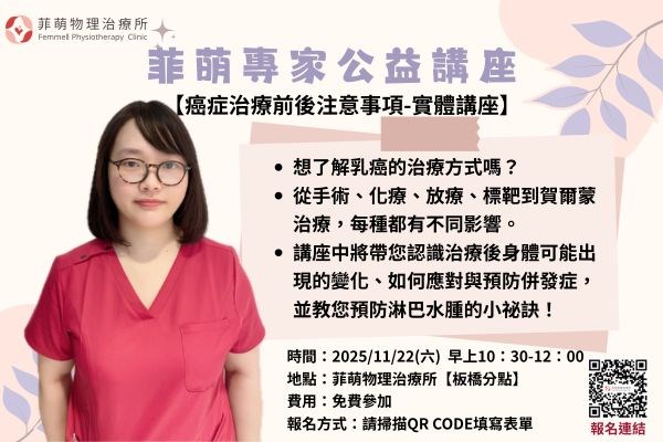 本治療所為全自費一對一物理治療,須事先來電/官網/LINE預約後,第一次前來的初診病人需攜帶三個月內醫師開立的診斷證明書、照會、醫囑以上其一的文件。(包括但不限於乳房外科、血液腫瘤科、骨科、神經科、復健科、中醫、家醫科、外科、泌尿科、婦產科、疼痛科、小兒科等)